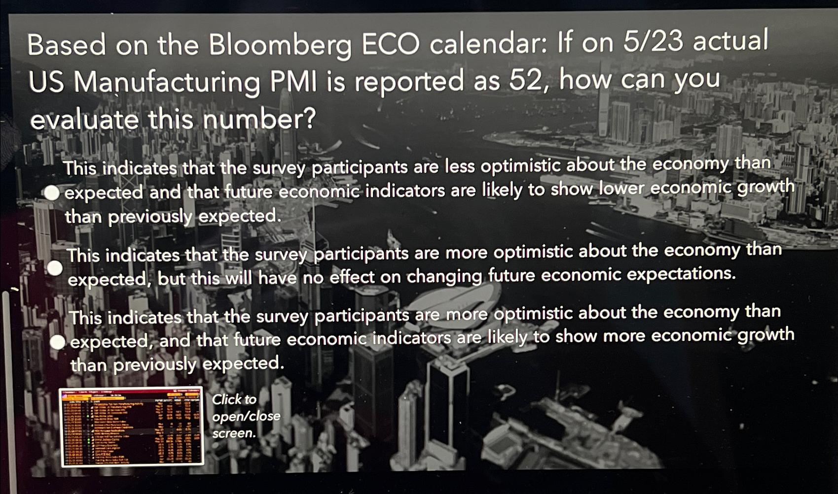 Check economic calendar events in real time on bloomberg and see the global financial market impact by country and importance with. It is based on five major indicators: Based on the bloomberg eco calendar: To assess the given figure from the economic schedule, you would compare it to the standard benchmark for. Which description most accurately reflects the history and forecast of us net exports, based on the actual and forecast data in the ecfc. If on 5/23, 670k actual us new home sales are reported, how should you evaluate this number? Based on the bloomberg eco calendar: New orders, inventory levels, production, supplier deliveries, and the employment environment.