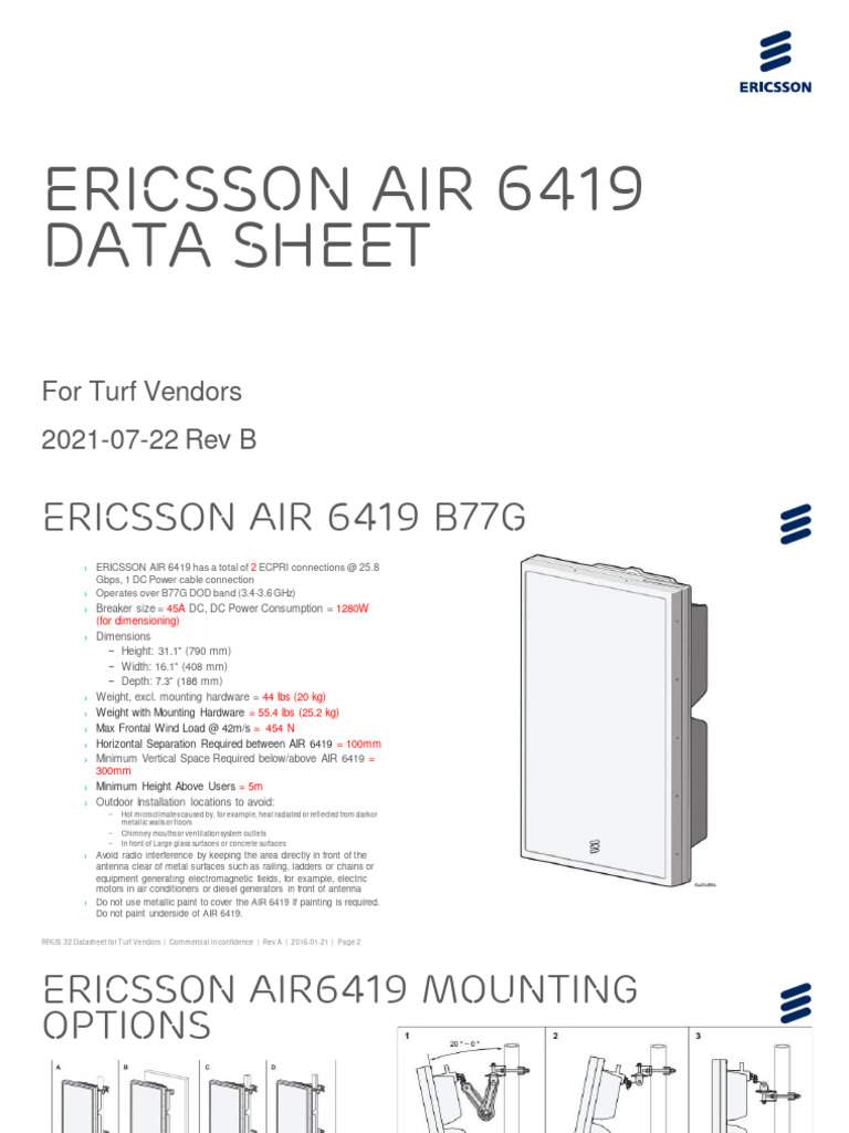 Ericsson AIR 6419 Band 77 (DOD Spectru) Turf Spec Sheet Rev B 072221