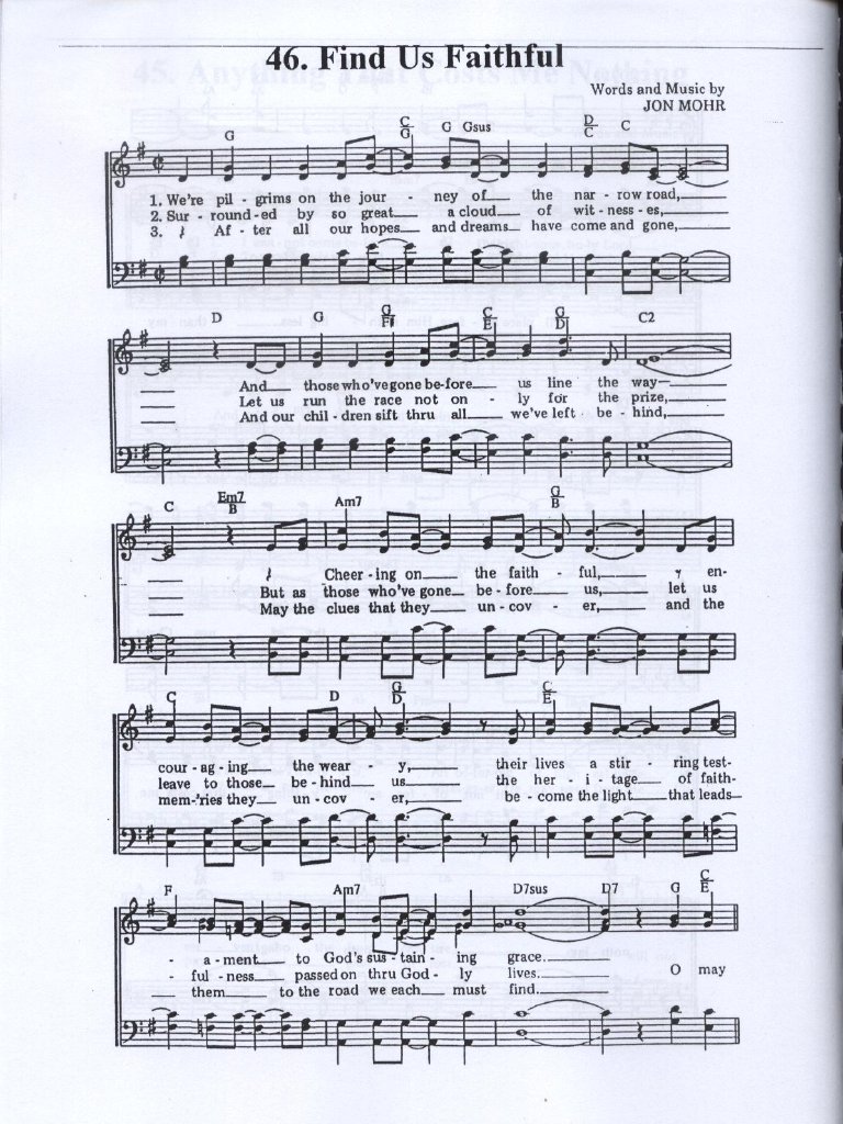 Choral setting by jack schrader. Now will get the performance disc. Browse our 3 arrangements of find us faithful. sheet music is available for piano, voice, guitar and 1 others with 3 scorings in 6 genres. Was this review helpful to you?