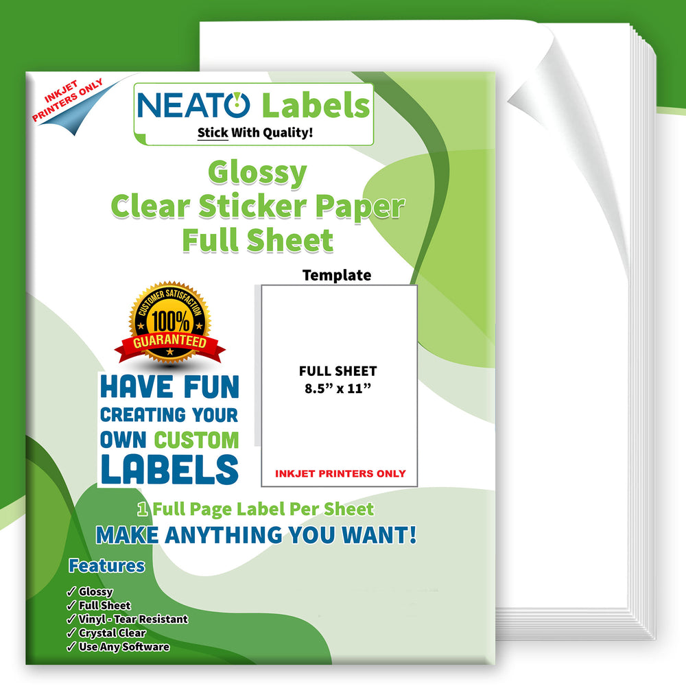 Full Sheet Labels - Choose a style and select for a printer type, wether you need matte, glossy, waterproof, clear or a custom color, we've got. Find the perfect full sheet label option, with or without back slit peels, in a hundreds of material and size options. 8.5 x 11 full sheet labels (sl111no_slit) 890 customer reviews.