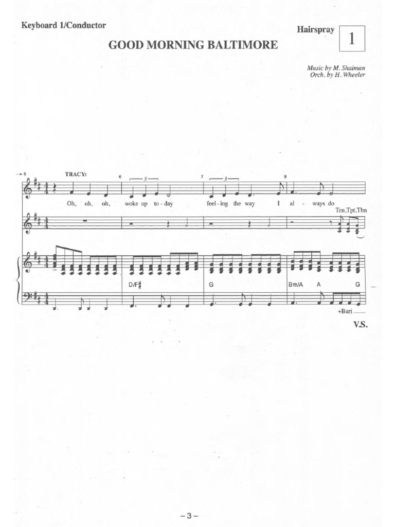 Share, Download And Print Free Sheet Music Of Good Morning Baltimore Marc Shaiman For Piano, Guitar, Flute And More With The World's Largest.