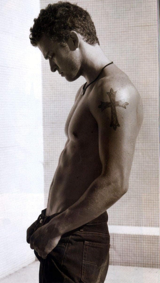 Justin timberlake's tattoos are in an old school, black and white style, rather like many vintage tattoos. Justin timberlake has six tattoos; His celtic cross on his arm symbolizes his undying faith. A large cross on his left shoulder, a guardian angel on his back, a band of flames with red rope on. He wears a cross on one arm, a. Born to pastors in the “bible belt,” timberlake’s belief in his faith.
