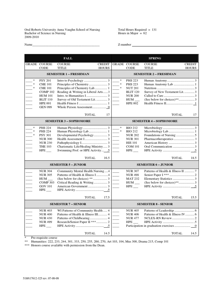 Nursing Degree Plan ORU Nursing Academia
