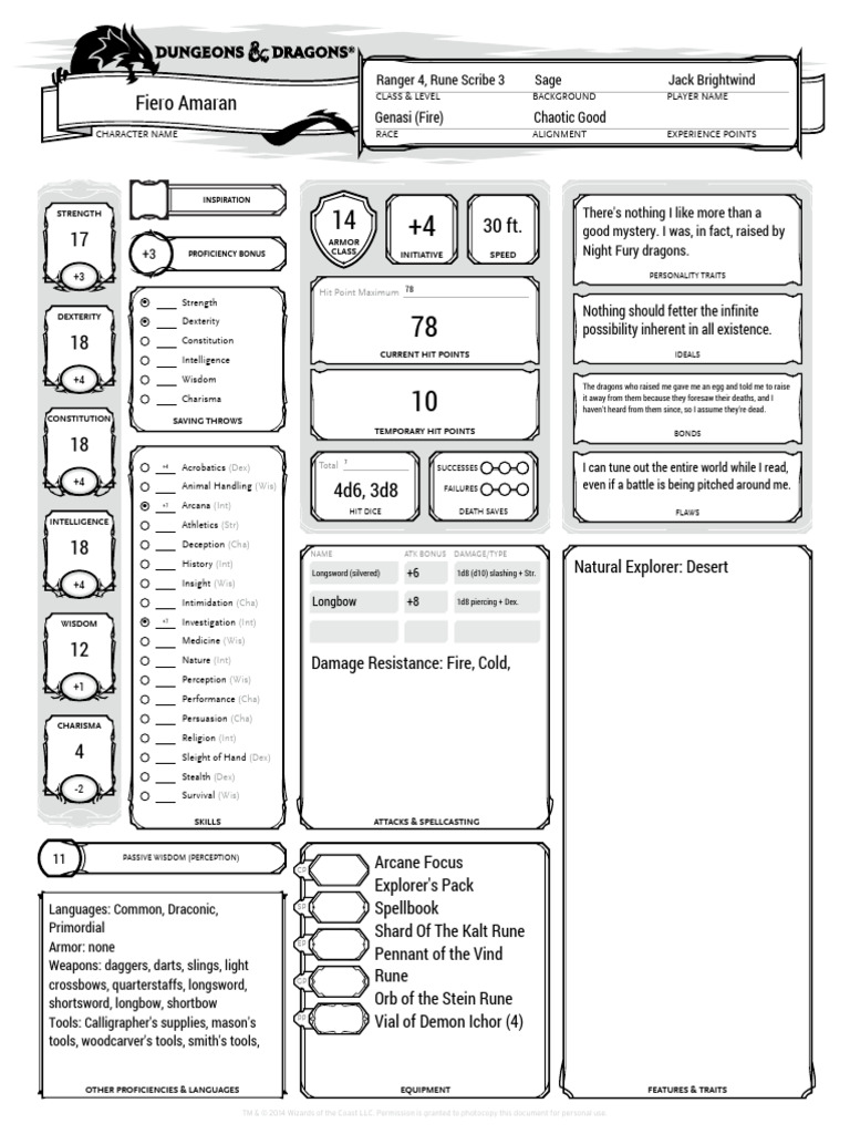 Character Sheet (Premade) PDF Role Playing Games Dungeons & Dragons