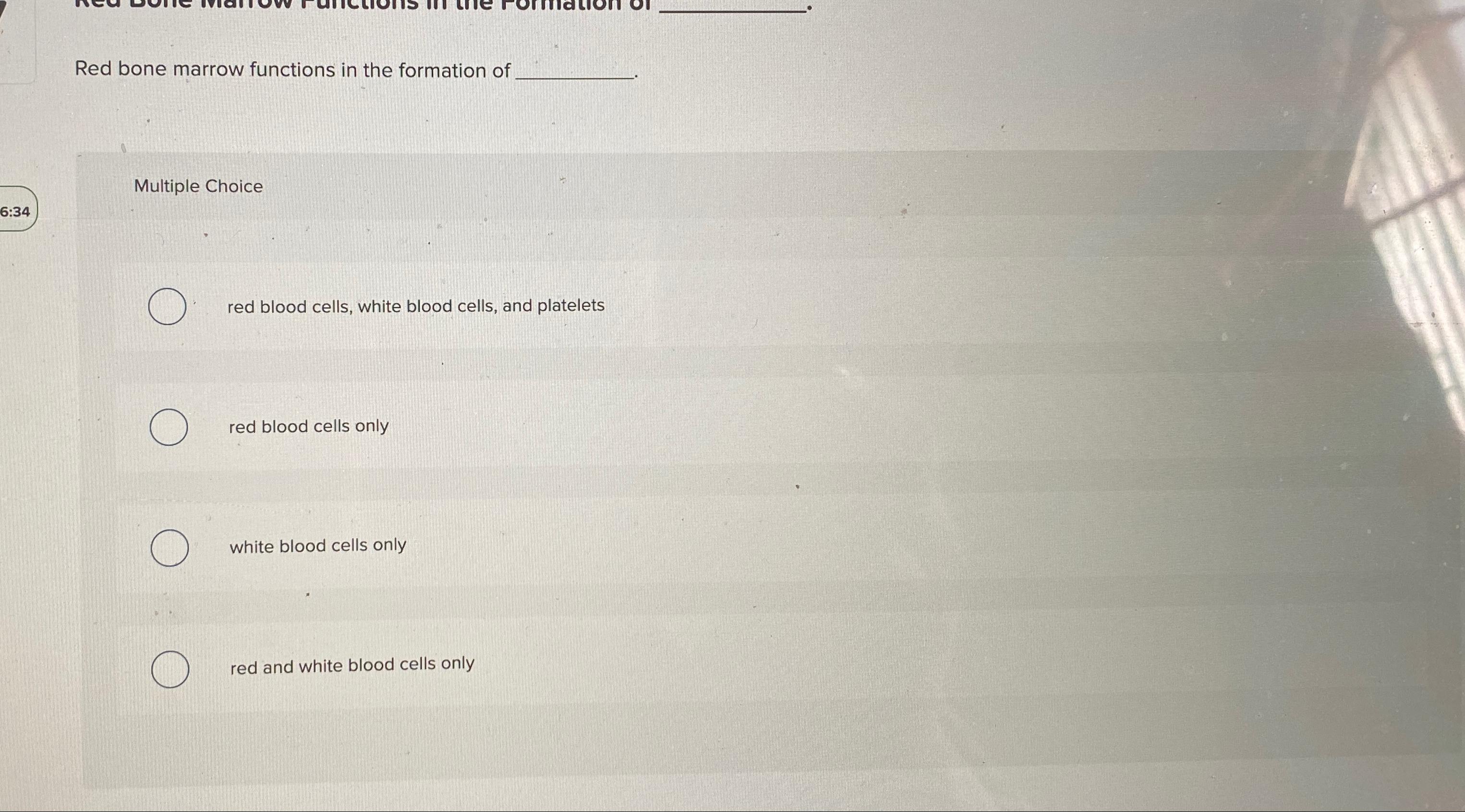Solved Which type of bone marrow functions in the formation of red