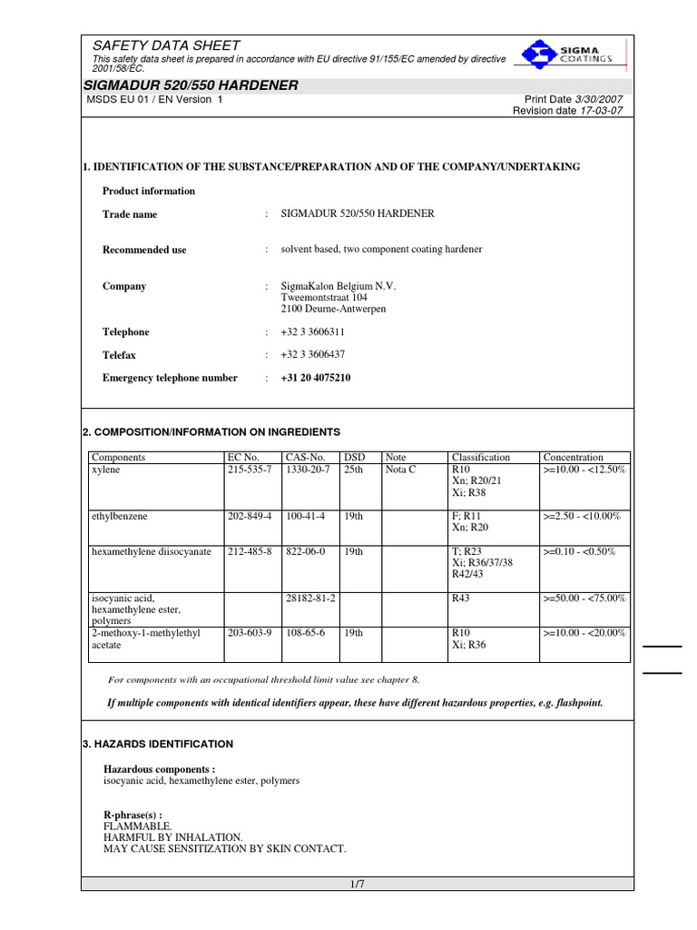 Looking for a safety data sheet? Sigma hi mark traffic paint sp conforms to regulation (ec) no. Msds sigmafast 45 (sigmasteel gloss) msds sigmarine 42 (sigmavar gloss) msds sigmarine 49 (sigmaferro gloss) msds 0604 sigma aluminium. What type of document can we help you find? 1907/2006 (reach), annex ii code :