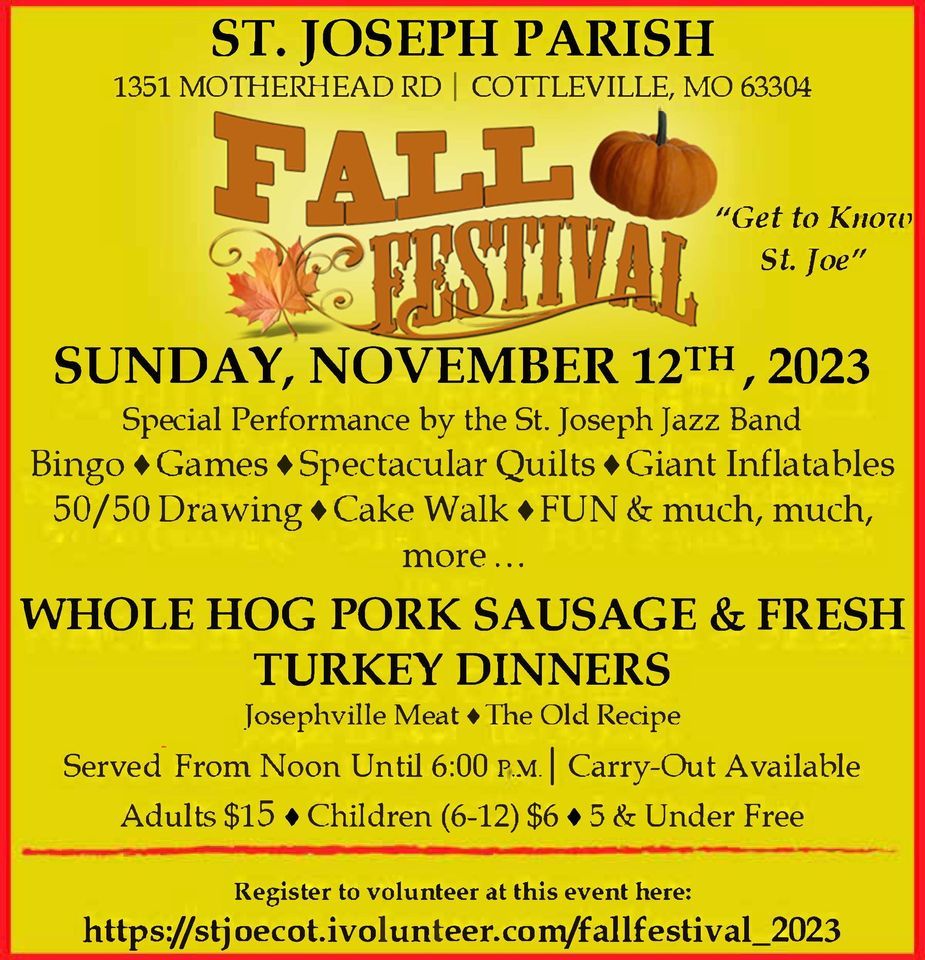 St. Joseph Fall Festival! St. Joseph Parish Cottleville November 12