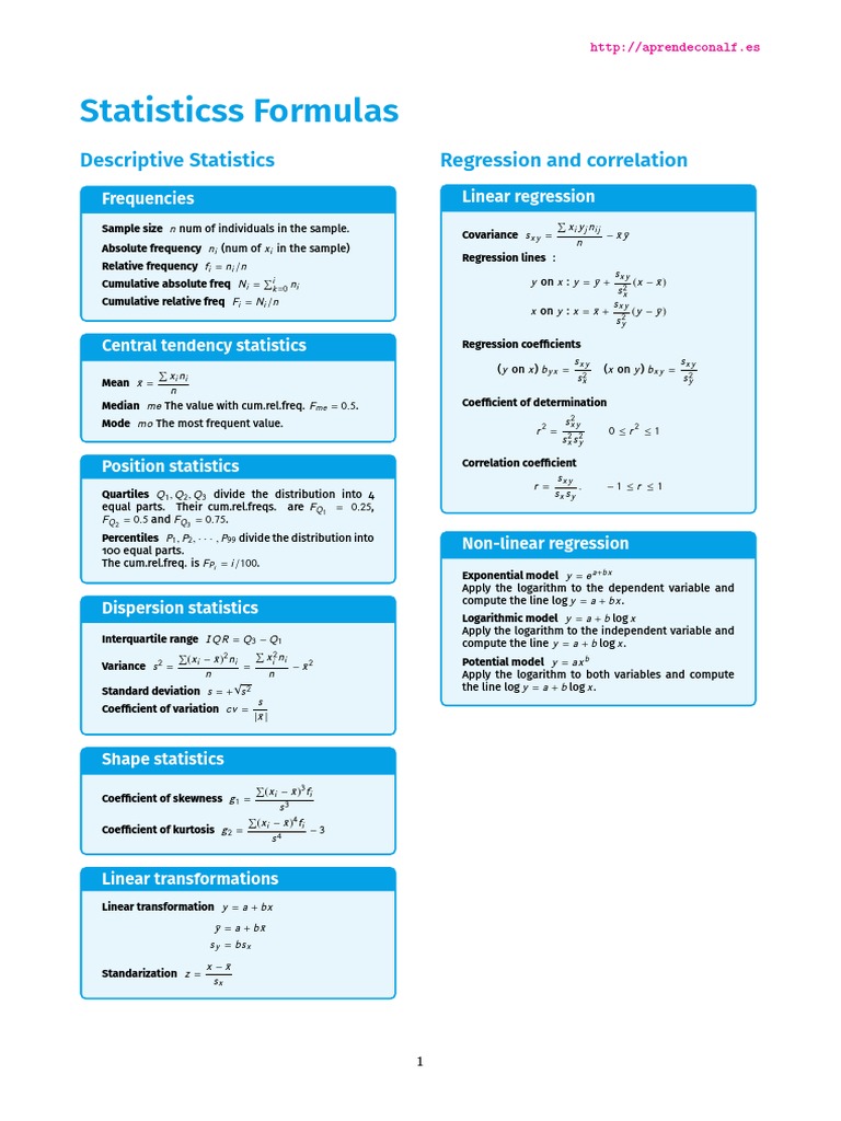 Statistics Formulas Cheatsheet Mathematical Analysis Statistics