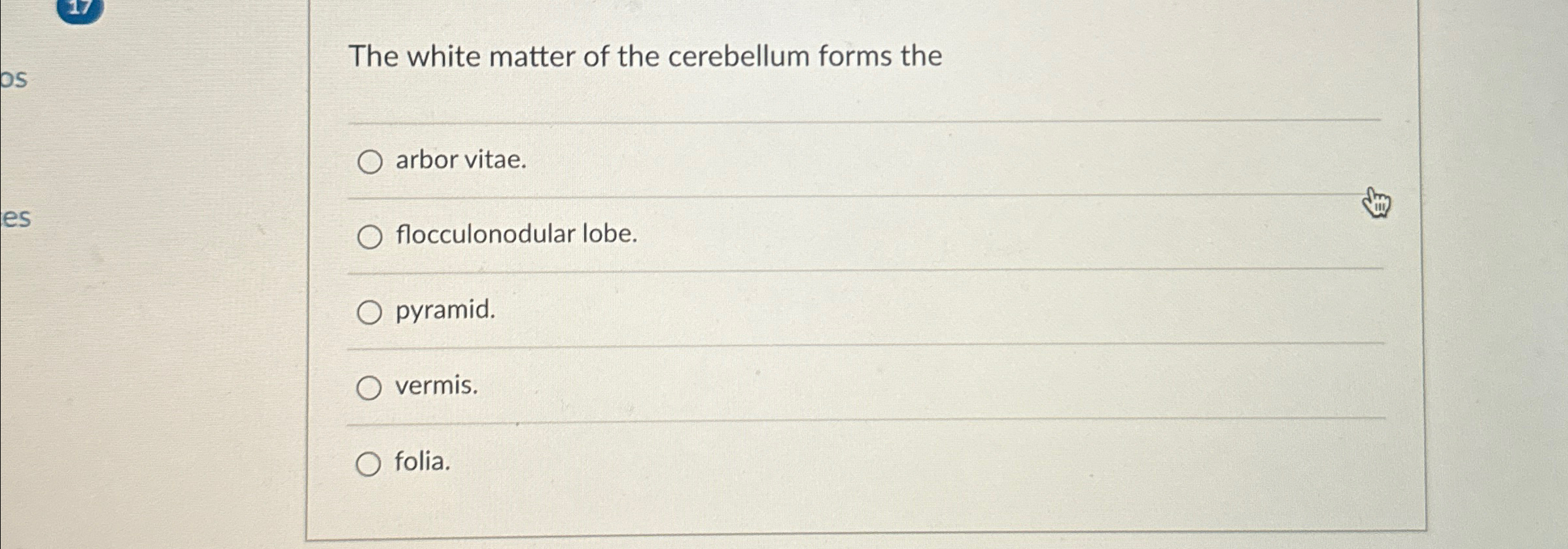Solved The white matter of the cerebellum forms thearbor